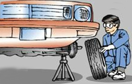如圖所示,操作人員欲用支架換取轎車輪胎,實不可行,若支架在換取過程中出現散落等情況定會給操作帶來影響,并對人員安全造成威脅,因此建議選擇專用工具進行相關操作。
