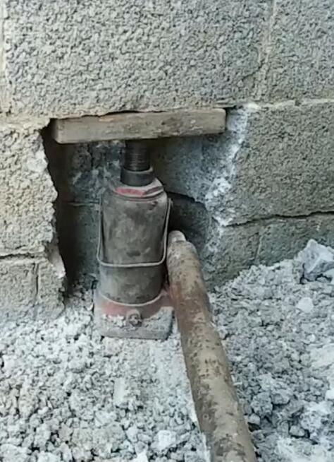 舊墻體的拆除過(guò)程中千斤頂起到了非常重要的作用,大大的節(jié)省人力勞動(dòng),加快墻體拆除進(jìn)度。